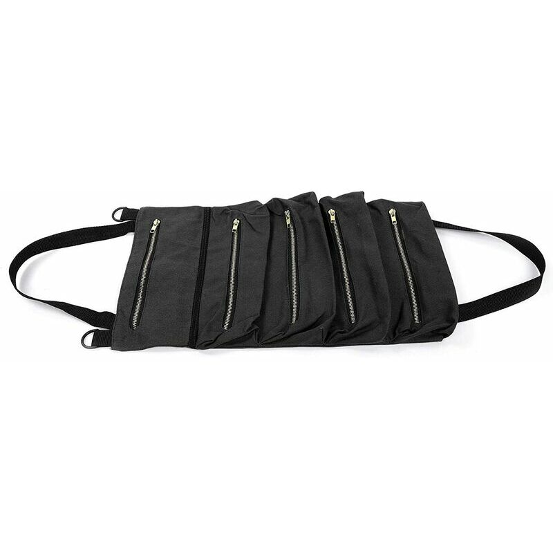 Borsa portaoggetti: borsa portautensili multifunzione, grande capacità, accesso rapido e facile a strumenti e piccoli accessori. Borsa portautensili: con tasca con cerniera, può contenere vari cacciaviti, prese, strumenti per pneumatici o livellamento attrezzi. Custodia per attrezzi: utilizza materiale in tela cerata impermeabile, forte e durevole, resistente all'abrasione e allo strappo. Borsa per attrezzi: con robusta cintura di fissaggio al centro, 5 tasche con cerniera, che può contenere vari attrezzi e accessori. Borsa attrezzi da giardino: arrotolabile e riponibile, compatta e portatile, adatta a giardinieri, elettricisti, carpentieri e meccanici di automobili.