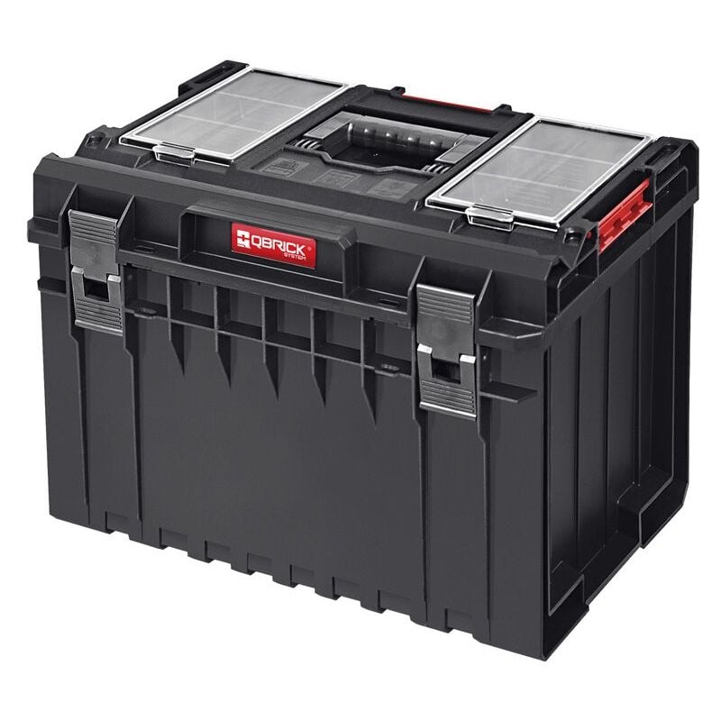 ONE 450 è una cassetta portautensili dalla capiente capacità di 52 litri che può ospitare elettroutensili e utensili manuali di grandi dimensioni. Due divisori regolabili garantiscono l'ordine all'interno della scatola. Ogni scatola è dotata di una guarnizione flessibile che fornisce una protezione completa contro l'ingresso di polvere e acqua. La versione professionale prevede coperture dotate di due capienti organizer con divisori mobili e pellicole in policarbonato antiurto. La struttura rinforzata del coperchio e della carrozzeria garantisce un'elevata capacità di carico (50 kg) e può sopportare pressioni fino a 120 kg, consentendo la creazione di comode piattaforme di lavoro. Dimensioni: 585 (L) x 385 (L) x 420 (A)