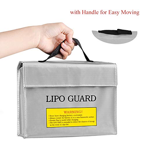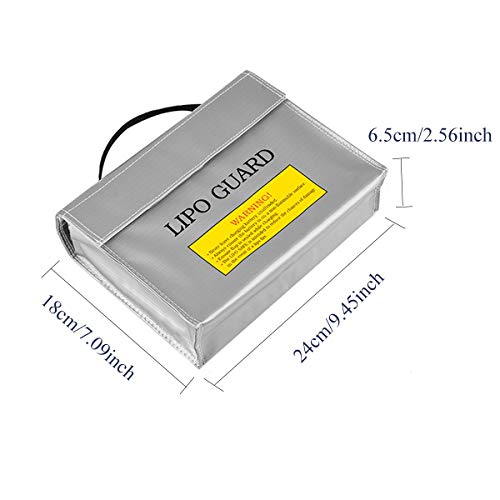 Borsa Batteria LiPo,Xiuyer 2 Pezzi Batterie Protezione Borsa Ignifugo Anti Esplosione LiPo Guard Sacchetto per Ricarica e Stoccaggio Sicuri(240x65x180mm, Argento)