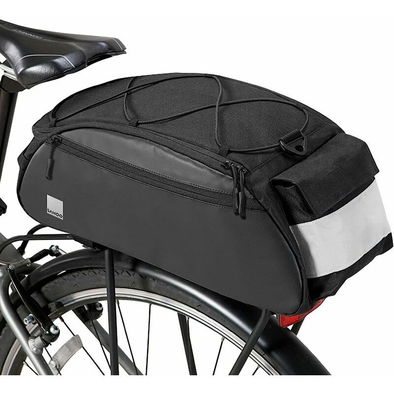 GRANDE PORTATA - Totale: 10L. Con più tasche, questa borsa da bici può ragionevolmente ospitare oggetti diversi. L'elastico superiore può essere allungato per posizionare vestiti e altri oggetti facili da appendere., 【COMPLETAMENTE IMPERMEABILE】 Il materiale ad alta densità 600D è leggermente impermeabile, la borsa posteriore può essere utilizzata nei giorni di pioggia e in condizioni di elevata umidità. br > 【DESIGN DI SICUREZZA】 L'estremità della borsa è dotata di una striscia riflettente. Puoi anche appendere una luce posteriore al passante all'estremità della borsa. Entrambi i design offrono una doppia garanzia di sicurezza durante la tua esperienza in bicicletta. 【DUE STILI】Borsa da bici e borsa a tracolla. Con la tracolla regolabile inclusa, questa borsa può essere utilizzata come borsa a tracolla di grande capacità. Una borsa per molti usi. 【FACILE INSTALLAZIONE】 La custodia è fissata da quattro chiusure in velcro, la stabilità è garantita. Compatibile: può essere facilmente