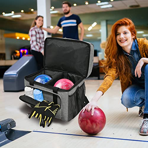 Borsa da bowling con 2 palline da bowling con divisore imbottito e supporto per palline, adatta a un singolo paio di scarpe da bowling fino alla taglia 16 da uomo