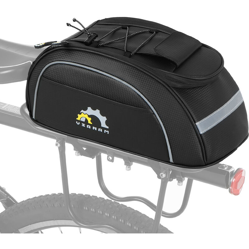 La borsa per il bagagliaio della bici e realizzata in pelle PU impermeabile che puo mantenere asciutti i tuoi oggetti. Il rivestimento isolante fornisce protezione termica in modo da poter gustare cibi caldi o bevande fredde anche dopo ore dopo. Ha due tasche laterali, una tasca superiore e un cordino elastico per fornire piu spazio per riporre i tuoi effetti personali. e facile da installare sul portapacchi posteriore della bici. Con una tracolla regolabile, puoi anche portare la borsa a tracolla. Caratteristiche: Realizzato con pelle PU, impermeabile, resistente e facile da pulire. La fodera isolata mantiene la bevanda fredda o calda per ore. Elementi riflettenti per una migliore visibilita e guida sicura di notte. Due tasche laterali e una tasca superiore per riporre piccoli accessori. Il cordino elastico elastico mantiene saldamente i vestiti o le mappe sulla borsa. Cinghie di montaggio regolabili con fibbia a sgancio rapido per una facile installazione e rimozione. Tracolla
