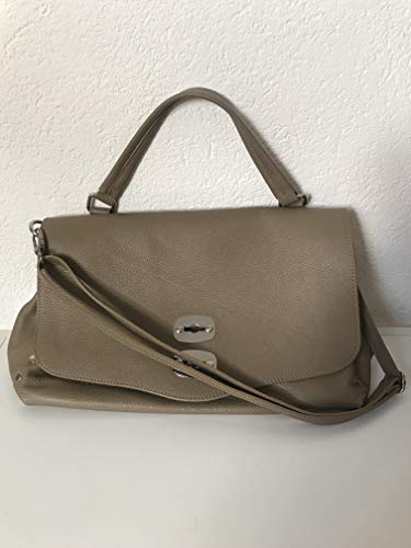 BORSA Cartella IN VERA PELLE MADE IN ITALY donna con tracolla colore TAUPE e rifiniture argentate cm.39x26