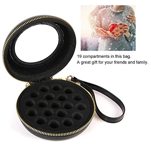 Borsa per la conservazione degli oli essenziali a 19 scomparti, porta oli essenziali portatile da 2 ml, borsa per la conservazione in resistente pelle PU(Tasche+Flasche-Nero)