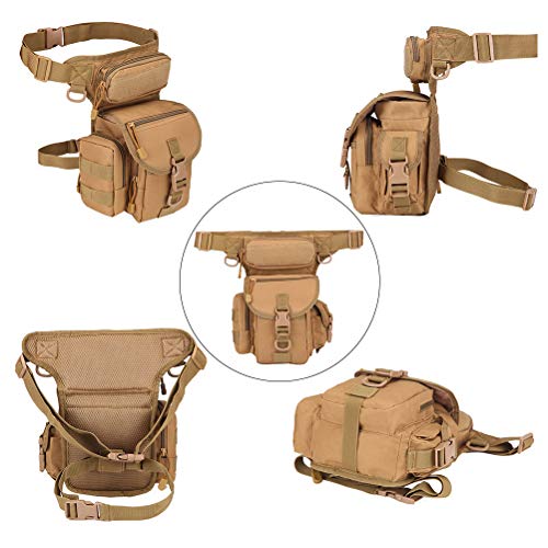 Borsa da Coscia Militare Regolabile, Marsupio Pratico da Escursionismo Gamba da Motociclista per Anca in Vita Maschile (Abbronzatura)
