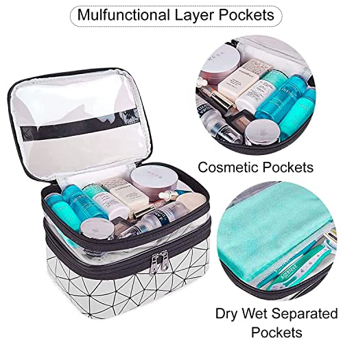Borsa per Cosmetic,2 Pezzi Borsa da Trucco a Doppio Strato,Borse per Trucco,Multifunzionale Borsa Cosmetica,Borsa da Toilette Impermeabile,Borse Cosmetiche da Viaggio
