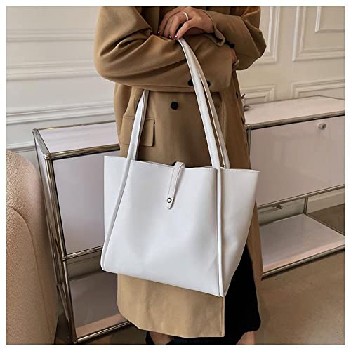 Borsa donna elegante, Grande Borsa a Spalla PU Pelle Morbida, Borsa Mano Capiente Manico Lungo, Bag Donna, borsa per laptop, Moda borsa a tracolla, Borsetta ragazza, valigetta (bianco)