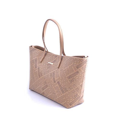 Borsa donna love moschino shopping grande in pelle cuoio marrone logata jc4025