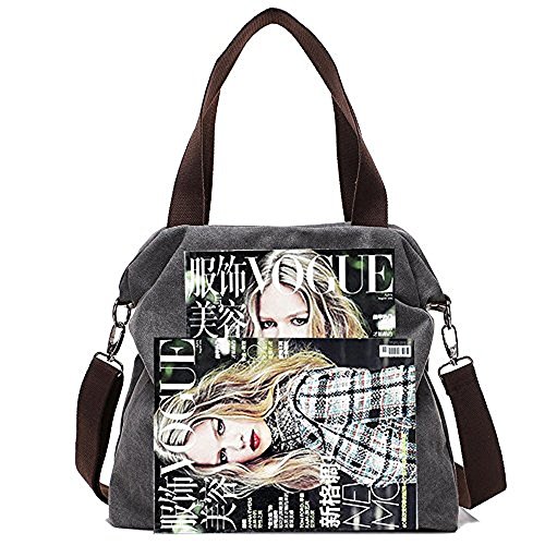 Borsa Donna Tela Tracolla Borse a Mano Zaino Bags Borsa Spalla in Tela Borsetta Vintage Shopper Messenger Bags Multifunzione Grigio 1 Pezzi