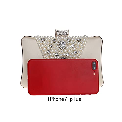 Borsa Elegante Borsa di Sera Pochette Borsa da Sera con Perle Pochette con Perline Fatte A Mano per Banchetti di Festa (Color: Beige, Size: S)