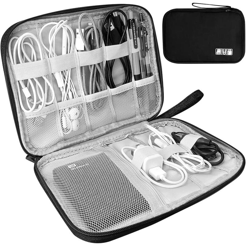Mantieni tutto in un unico posto: La custodia elettronica ti aiuta a tenere insieme tutti i tuoi accessori elettronici e vari cavi. Come cavi USB, disco flash, alimentatore, cavi, schede di memoria, pen drive, caricabatterie, penne, cuffie, borsetta, ecc. Grande capacità: La nostra borsa organizer per cavi da viaggio ha spazio sufficiente per contenere vari oggetti, ordinare i cavi ogni giorno, dimensioni: 25 x 18 cm (9,8 x 7,1), le dimensioni perfette si adattano facilmente alla valigetta, ai bagagli, allo zaino. Facile da trasportare: Tutto ciò di cui hai bisogno per essere riposto nella borsa per cavi in movimento, il design del braccialetto rende tutto a portata di mano, mostra rapidamente tutto ai controlli di sicurezza dell'aeroporto o della stazione ferroviaria. Borsa organizer grande per accessori elettronici o borsa organizer per cavi per computer. Resistente agli urti e all'acqua: Questa custodia è realizzata in nylon resistente all'acqua e materiale antiurto. Tutti gli