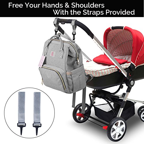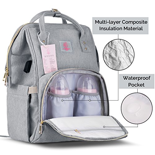 Borsa Fasciatoio Zaino Per Pannolini Multifunzione Impermeabile Zaino da Viaggio, 2 Tasche Isolanti Bottiglia, Borsa Nappy Stoffa Oxford, Grande Capacità, (GRIGRO)