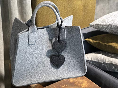 Borsa in feltro in stile tirolese - porta legna - gironali - giocattoli- da decorazione - grigio, 40 x 27 x 27 cm