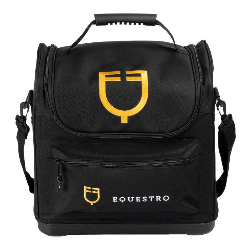 Borsa kit da grooming con tasche e tracolla Borsa da grooming realizzata in cordura, robusta e di facile manutenzione. I divisori interni sono realizzati con fodera liscia lavabile. Marca: Equestro Colore: Nero La borsa da grooming in cordura, è l'accessorio perfetto per mantenere tutto il necessario in ordine e a portata di mano. Una delle sue caratteristiche più distintive è la presenza di divisori removibili che consentono di personalizzare lo spazio interno in base alle proprie preferenze. La tasca anteriore con chiusura a zip offre uno spazio sicuro per riporre gli oggetti essenziali, mentre la tasca principale, anch'essa dotata di chiusura a zip, permette di organizzare al meglio gli strumenti e gli accessori. La comoda tracolla regolabile e la maniglia rendono il trasporto della borsa facile e senza sforzo. Il nostro impegno per la qualità si riflette nei dettagli: il logo e la scritta Equestro sono ricamati con cura sulla tasca frontale, aggiungendo un tocco di classe e