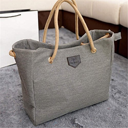 EJY - Borsa a mano da donna vintage in tela, misura grande grigio chiaro