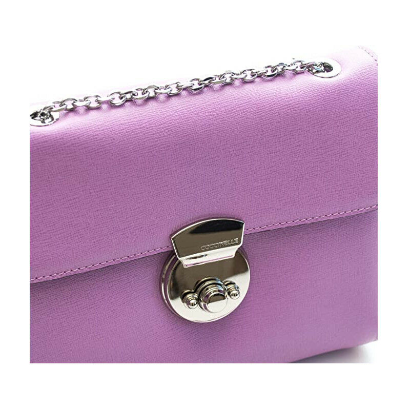 Coccinelle Borsa a mano joey saffiano Lilla Borsa semirigida in pelle stampa saffiano Tracolla/Manici regolabili con catenella metallica e fibbia Patta con chiusura a clutch e turn-lock (per aprire esercitare una leggera pressione verso il basso sul gancino in posizione orizzontale) Logo sulla placchetta metallica Tasca interna con zip Fodera interna in canvas Panno protettivo incluso Colore: Lilla Dimensioni: 21,5x17,5 cm