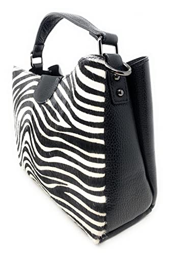 OH MY BAG Borsa a mano Pelle portata a mano, tracolla e da strada donna in vera pelle made in Italy - modello ORWELL Zebra
