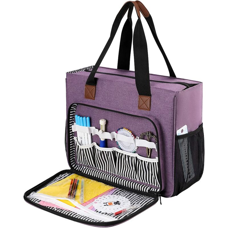 Ben progettato e ben progettato: la borsa a punto croce è realizzata in tessuto oxford impermeabile, resistente ai graffi e durevole, pesa solo 700 g. La borsa del progetto ha un fantastico design vintage, questo design sarà un'aggiunta elegante ai tuoi accessori. È molto più flessibile e compatto di una classica borsa da ricamo. Progettato in modo sensibile con tasche per modelli e una tasca con cerniera e tieni il ricamo fuori dalla portata dei bambini [Mantiene i progetti di ricamo piatti e organizzati] Dimensioni: 36x14x30 cm. La borsa include 1 tasca esterna con cerniera (4 elastici e tasche per fissare pennarelli, forbici e altro) e 1 borsa principale, con diversi scomparti che rendono facile organizzare la tua scatola di immagazzinaggio del filo, i telai da ricamo e gli accessori, pronti per il tuo prossimo grande progetto. Tieni tutto ciò di cui hai bisogno a portata di mano e sarai in grado di sfruttare al meglio ogni idea [Protegge i progetti incompiuti e facile da