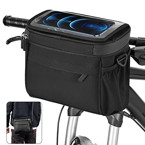 Borsa Manubrio Bici, Borsa Da Manubrio Per Bicicletta Con Touch Screen, Grande Capacità 5L,Borsa Bici Telaio Impermeabile Con Tracolla Removibile & Adattatore, Borsa Anteriore Per Bici Mtb