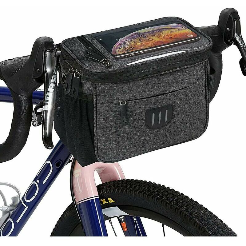 Borsa da manubrio impermeabileRealizzato in tessuto oxford impermeabile e resistente, l'acqua piovana non è facile da penetrare. Inoltre, il supporto per telefono può proteggere il tuo cellulare da schizzi d'acqua e polvere. Sole. 6L di grande capacitàDimensioni: 22 x 17 x 14 cm. La nostra borsa da manubrio per bicicletta pesa solo 310 g, ma offre una capacità di 6 l. Inoltre, la borsa a rete antistrappo in tessuto di poliestere lavorato a maglia può essere utilizzata per trasportare dispositivi elettronici, caricabatterie, asciugamani, bicchieri d'acqua, ecc. È facile e conveniente da regolare e installare sulla maggior parte dei tipi di biciclette, il che è molto adatto per la maggior parte dei tipi di biciclette, come biciclette, biciclette pieghevoli e mountain bike. Ampia Applicazione La nostra borsa da manubrio è una soluzione semplice per aggiungere ulteriore spazio di archiviazione alla tua bici in modo sicuro e affidabile. Adatto per la maggior parte dei tipi di biciclette