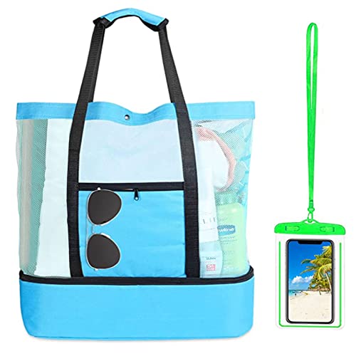 Borsa Mare Impermeabile, Borsa Spiaggia Grande, Borsa a Rete per Giocattoli da Spiaggia, Borsa Spesa Pieghevole, Borsa Rete Mare con Borsa Impermeabile, Borsa Mare per Famiglia Vacanze Estive(Verde)