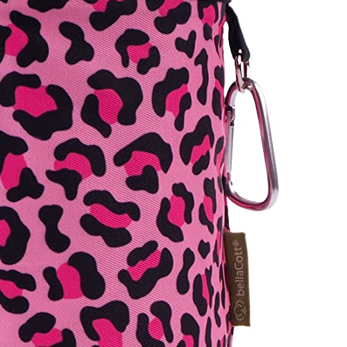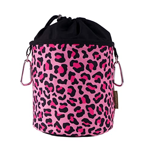 Borsa per mollette da bucato portatile in cotone,2 moschettoni resistenti, chiusura a cordoncino e fermaporta in metallo per riporre le mollette da bucato, motivo: Animal Print, colore: nero/rosa/rosa