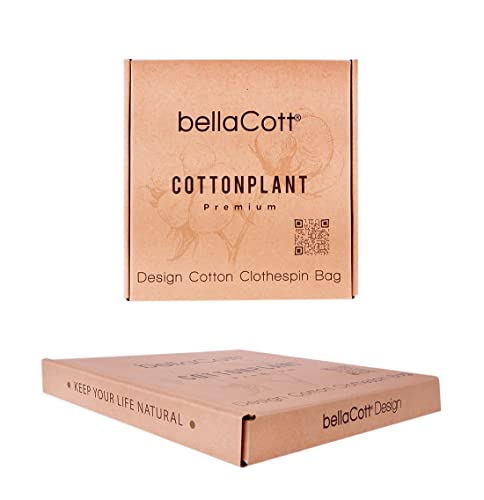 Robusto sacchetto per mollette da bucato BellaCott con due moschettoni argentati per il fissaggio allo stendibiancheria o alla cintura dei pantaloni, con chiusura a cordoncino e fermo in metallo. Grazie alla pratica dotazione le mollette non cadono dal sacchetto e sono sempre a portata di mano.