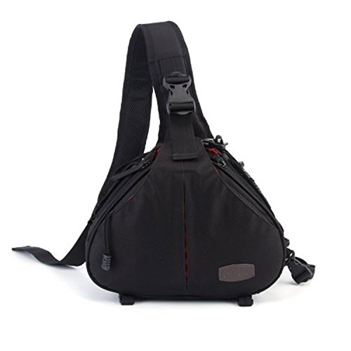 Borsa Monospalla per Fotocamera DSLR e Accessori Borsa Custodia per Fotocamera Reflex con Coperta Parapioggia, Nero