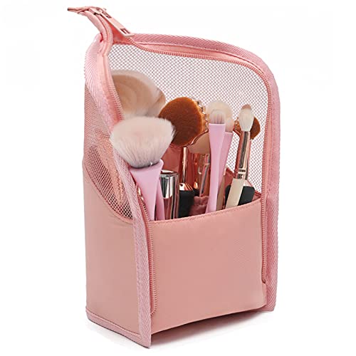 Borsa Organizzatore Pennello Trucco,Supporto Portatile Ad Alta Capacità-porta Spazzole Per Il Trucco Up,Set Di Pennelli Per Il Trucco Dell'artista Professionista Per I Viaggi-Rosa 24.5x13.5x13cm(10x5x