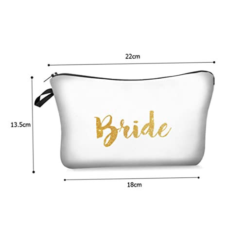 La borsa per il trucco per sposa è stampata con il motivo della lettera della sposa d'oro..La borsa per il trucco con cerniera è carina e interessante.