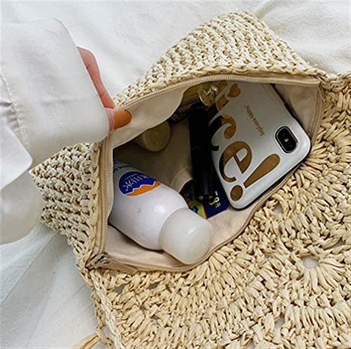 Borsa di paglia di nappa, borsa a tracolla da spiaggia tessuta a mano da donna, borsa a mano intrecciata all'uncinetto (Color: Beige)