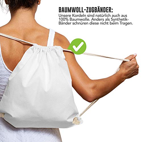 QUALITÀ ALTA QUALITÀ ED ECOLOGICA: con una grammatura di 140 g / m² invece dei soliti 100 g / m², queste borse da palestra sono quasi il 40% più forti e più resistenti. Il cotone certificato OEKO-TEX e le cuciture interne collegate assicurano stabilità e protezione ottimale per i tuoi articoli preferiti.