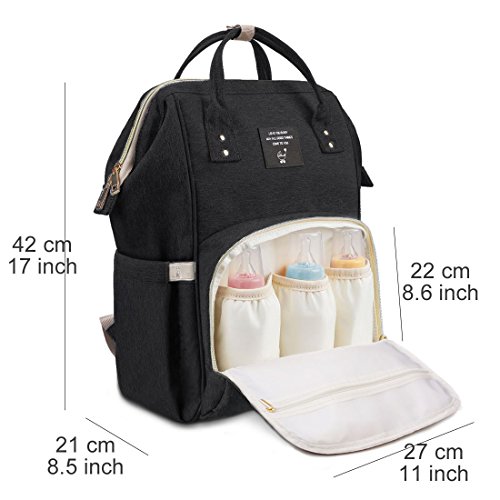 GRANDE PORTATA: Un grande compartimento principale con molti vani portaoggetti, una bottiglia di latte, una bottiglia d'acqua, vestiti, un pannolino, un asciugamano e altri articoli per bambini possono essere ben posizionati, tutto al suo posto e è quindi immediatamente disponibile