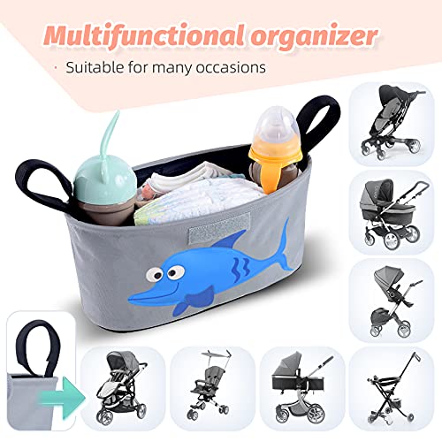 Borsa per Passeggino Universale Portaoggetti con Tracolla,Neonati Borsa Organizer,Portaoggetti Impermeabile Con Cerniera,Tasche di Design per la raccolta di Salviette, Pannoli, Merenda (balena)