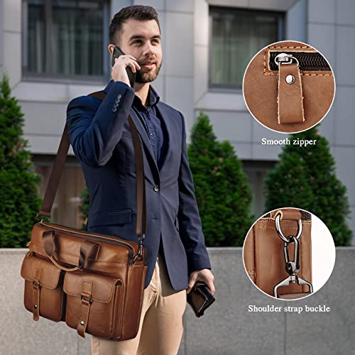 Borsa Pelle Uomo,Borsa a Tracolla in Pelle Ventiquattrore Pelle Borsa Porta PC Pelle da 14 Pollici Borsa a Tracolla Vintage Borsa Portadocumenti per Laptop Business Ufficio,Marrone