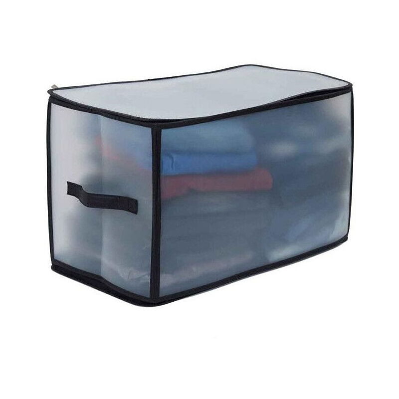 Conserva i tuoi vestiti senza problemi in questa custodia. La borsa è trasparente che ti permette di vedere rapidamente cosa hai messo dentro. La borsa ha una maniglia che ne facilita il trasporto. La custodia può essere utilizzata per riporre vestiti e altri tessuti che usi meno spesso, come cesto della biancheria o come porta abiti per chi vive un po' meno. - Custodia trasparente per indumenti - con manico - Si adatta bene sia al cesto della biancheria che allo stoccaggio Specifiche: Colore: trasparente Materiale: polipropilene e poliestere Dimensioni: 52 x 30 x 30 cm Peso: 0,399 kg