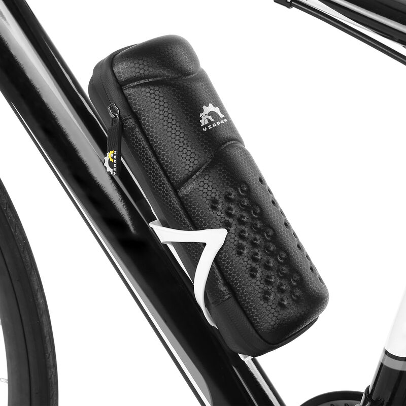 Questa borsa da bici compatta e sottile offre un'organizzazione piu comoda e ben organizzata durante il ciclismo! Caratteristiche: Guscio in EVA rigido resistente all'acqua e cerniere sigillate, antiurto, antipioggia e facile da pulire. Spazio interno ragionevole per separare le tue marce. 1 litro di spazio puo contenere la tua mini pompa, toppe per pneumatici, attrezzi per bici, ecc. Si monta facilmente sul portaborraccia della tua bici (non incluso). Adatto per la maggior parte delle mountain bike e bici da strada. Specificazione: Materiale: EVA Capacita: 1L Dimensioni: 24 * 9 * 8 cm / 9,4 * 3,5 * 3,1 pollici Peso: circa. 113,7 g / 4,0 once Elenco dei pacchetti: 1 * Borsa per attrezzi da bici