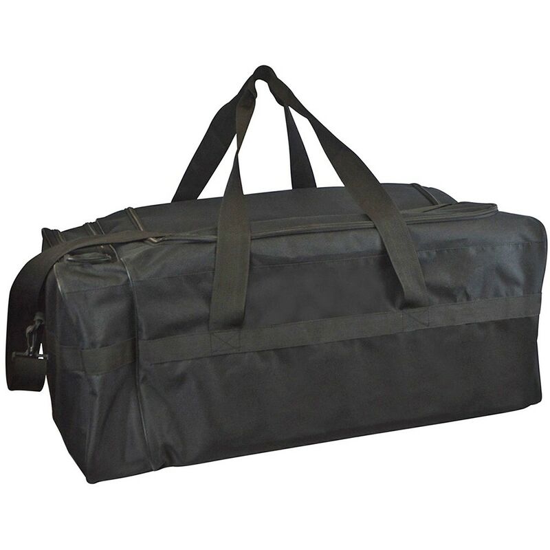 Borsa con maniglie per trasporto attrezzi da palestra In nylon rinforzato, con maniglie e tracolla. Borsa multi-funzione con maniglie e tracolla regolabile, realizzata interamente in nylon 600 denari, con cuciture di rinforzo nei punti di maggiore sollecitazione. Ampio scomparto con lembo ad apertura totale ad U e tasca separata, entrambe con chiusura a cerniera. Adatta per il trasporto di attrezzi (coni, ostacolini, tappetini), palloni, racchette (capacità 20 racchette da tennis o 40 racchette da badminton), ecc. ecc. La tasca separata è adatta a contenere oggetti di piccole dimensioni (esempio fino a 10 tubi di volani, 5 tubi di palle da tennis, ausili per il pronto soccorso, ecc.). Dimensioni 80x48x33H cm.