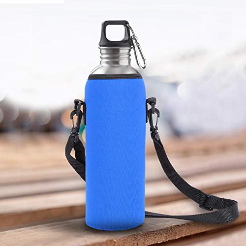 Borsa porta bottiglie dell'acqua,Portabottiglie per acqua all'aperto, 1000 ml, custodia isolata in neoprene, con cinturino per sport (blu)