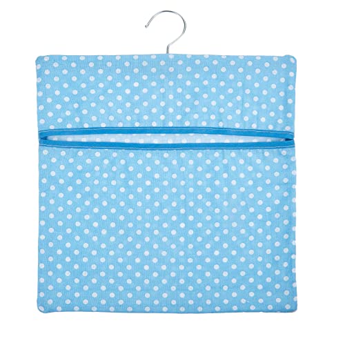 Borsa Porta Molletta da Appendere Sacchetto Portamolletta in Cotone a Pois Blu per Lavaggio Borsa per Bucato con Gancio in Metallo Stendibiancheria per Lavare Vestiti, 11,42 x 11,42 Pollici