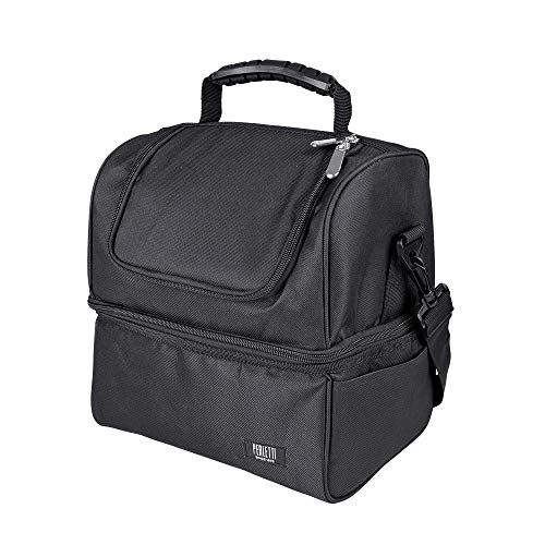 Borsa Porta Pranzo con Tracolla per Uomo e Donna - Lunch Box Termica a Due Scomparti per Cibo Caldo e Freddo - Portavivande Ufficio Scuola Lavoro - Nera - 30x27x20 cm - Perletti