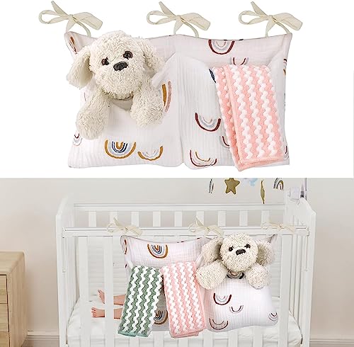 Borsa Portaoggetti Appendere Per Culla, Borsa Appendere Per Lettino, Organizer Per Culla 2 In 1, Contiene Pannolini, Giocattoli E Vestiti (arcobaleno bianco)