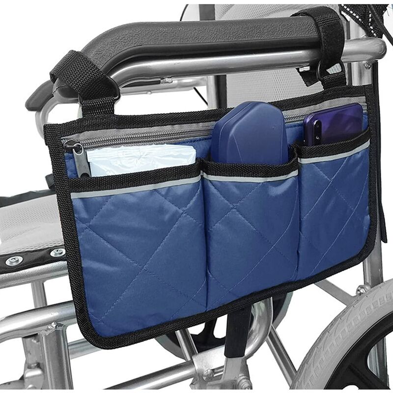 BORSA LATERALE DELLA SEDIA - La borsa laterale multifunzionale per sedia a rotelle consente opzioni e flessibilità per organizzare qualsiasi sedia. La custodia si attacca facilmente al bracciolo, allo schienale o ad altri elementi di supporto della maggior parte dei monopattini e dei dispositivi. GRANDE CAPACITÀ - Diverse tasche ti consentono di riporre sempre più cose, trasportare facilmente più oggetti come borse, occhiali, telefoni, bottiglie d'acqua, generi alimentari e altro ancora. Un'ottima borsa portaoggetti per tenere facilmente gli elementi essenziali a portata di mano per anziani, anziani, ecc. ALTA QUALITÀ - Questa borsa portaoggetti con tasca laterale per sedia è realizzata in materiale leggero, la borsa per sedia a rotelle è impermeabile per mantenere il contenuto al sicuro e asciutto . Con una lavorazione squisita, non assicura strappi o danni durante l'utilizzo della borsa laterale e funziona bene, efficiente e durevole. COMODO DA USARE - Ganci a strappo di lunghezza