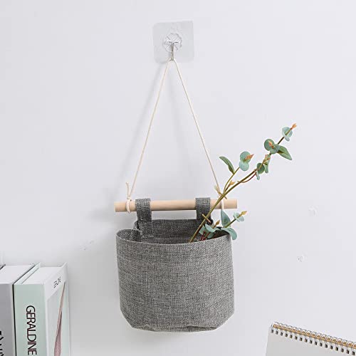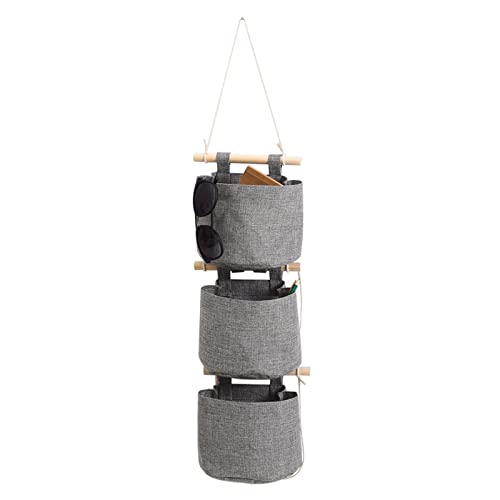 Borsa Portaoggetti Sospesa di Parete Appendere Tasca in Cotone Lino Portaoggetti da Parete in Borsa con 3 Tasche Rimovibile, Pieghevole, per Riporre Piccoli Oggetti Come Occhiali E Chiavi, Grigio
