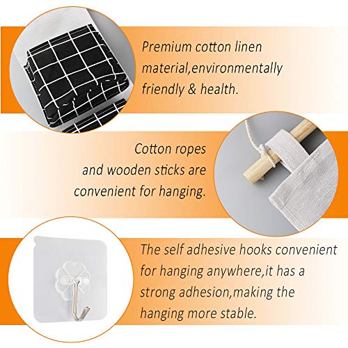 Buon materiale e garanzia di qualità : L'organizzatore pensile è stato realizzato in cotone e supportato da legno, supporto di carico stabile. È lavabile, traspirante e rimane in buona forma mentre è appeso al muro. Bastoncini di legno e panni di cotone hanno una grande area di resistenza e una grande capacità di carico. Consistenza confortevole, senza sbavature al tatto, non è tossico e inodore.