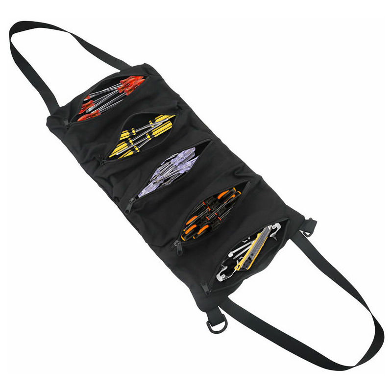 DIMENSIONI PERFETTE E GRANDE CAPACITÀ -- La nostra borsa per attrezzi in rotolo misura 28 x 47 cm, è dotata di 5 tasche con cerniera, quasi in grado di ospitare gli strumenti e le attrezzature di cui hai bisogno. E le cinghie della nostra borsa porta attrezzi sono abbastanza lunghe, si adattano a una varietà di sedili, si adattano saldamente al sedile e non invaderanno lo spazio per le gambe del passeggero. MATERIALE DUREVOLE - La borsa degli attrezzi è realizzata in tessuto oxford 600D;