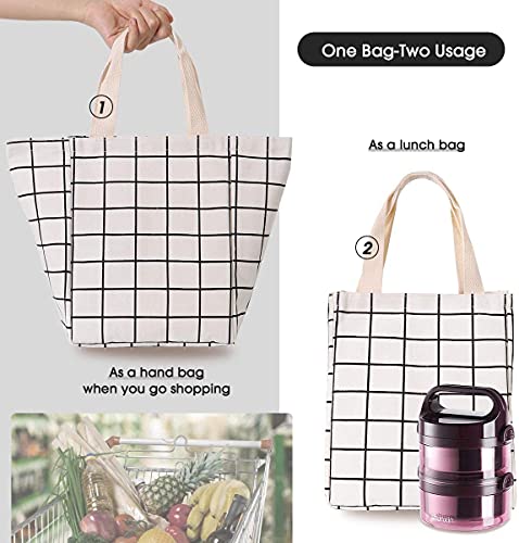 Borsa per Il Pranzo Riutilizzabile Borsa per Il Pranzo isolata in Tessuto di Tela con Foglio di Alluminio, Borsa per Il Pranzo per Donna, Uomo, Scuola, Ufficio (Scacchiera Bianca)
