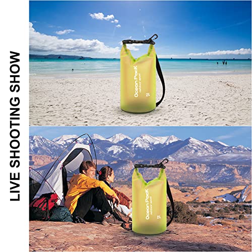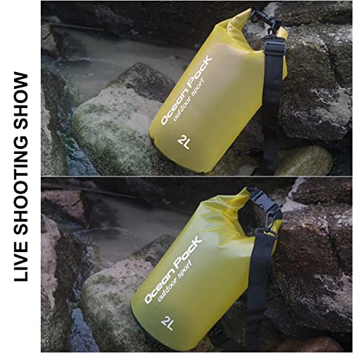 Borsa a secchiello impermeabile da 2 litri, tracolla regolabile, zaino satinato traslucido, borsa asciutta impermeabile, adatta per attività all'aperto, pesca, surf, escursionismo, campeggio, ecc.