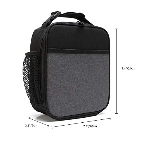 Borsa a secchiello per il pranzo, borsa termica in spessa tela impermeabile, con cerniera, elegante, per donne e ragazze, per l'ufficio, la scuola e l'aria aperta Black