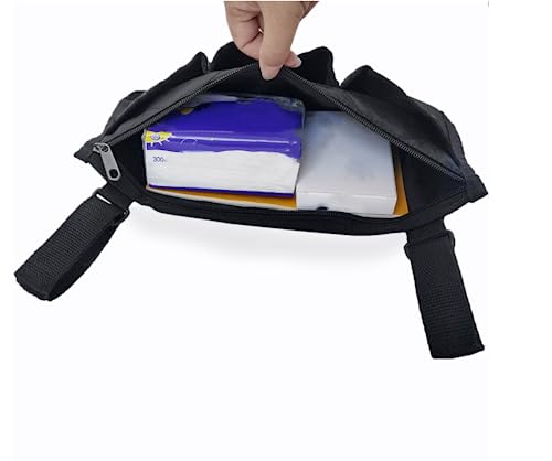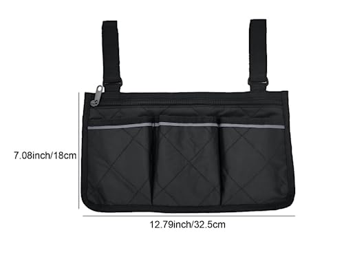 2,32,5 x 18 cm. La nostra borsa portaoggetti per sedia a rotelle ha tre piccole tasche e una tasca con cerniera per soddisfare le diverse esigenze di conservazione.